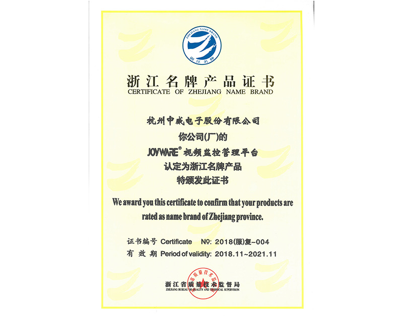 2018浙江名牌產(chǎn)品證書