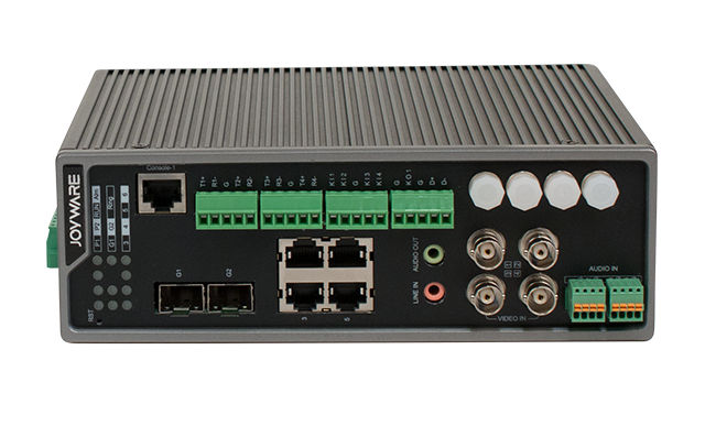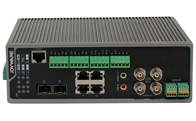 JW-SE20(GF2.E4.V4) 系列視頻工業以太網產品最大支持2個千兆SFP接口, 4個10/100M自適應電口,該設備支持OB-Ring私有環網協議,有效抑制網絡風暴和增加傳輸通道冗余功能;設備支持RSTP協議可以跟任意通信廠家進行對接;設備支持標準SNMP、LLDP標準協議,可以實現自動拓撲發現功能,遠程監控設備連接方式和運行狀態;設備支持電源告警、端口異常告警、流量閥值告警功能;設備支持VLAN功能,有效隔離不同業務傳輸,保證業務安全性;具有良好的電磁兼容性和防震動防沖擊能力;設備可支持700TVLine高線數模擬攝相機接入,采用標準H.264、MPEG4、MPEG2、MJPEG多種編碼算法,兼容性強;支持多種網絡協議,網絡功能強大,可聯網組成一個強大的安全防范系統。